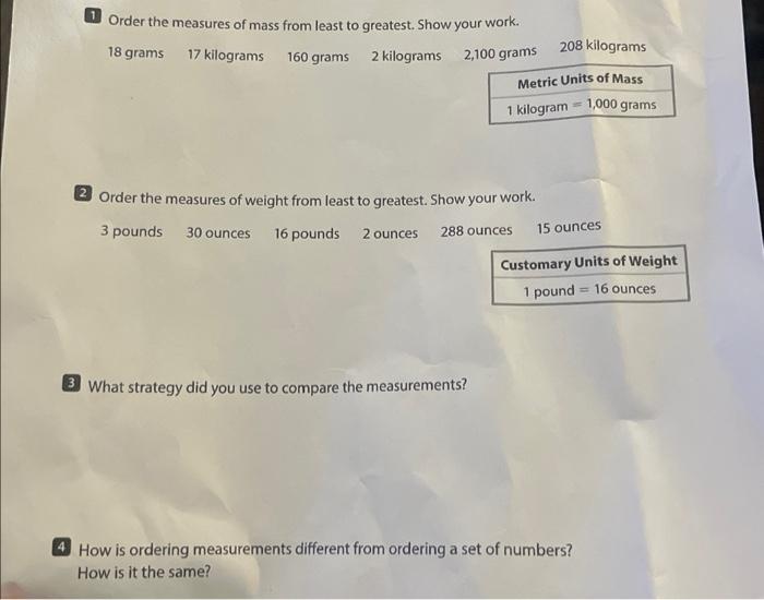 Solved 1 Order the measures of mass from least to greatest Very well made.